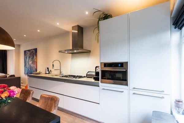 U betreedt de woning door een stijlvolle voordeur, hal met meterkast en toegang naar de woonkamer, gezellige living met houtkachel, balkenplafond en een plavuizenvloer over de gehele begane grond met vloerverwarming als hoofdverwarming. Woonkeuken met een landelijke inrichting voorzien van een composiet blad en diverse inbouwapparatuur.