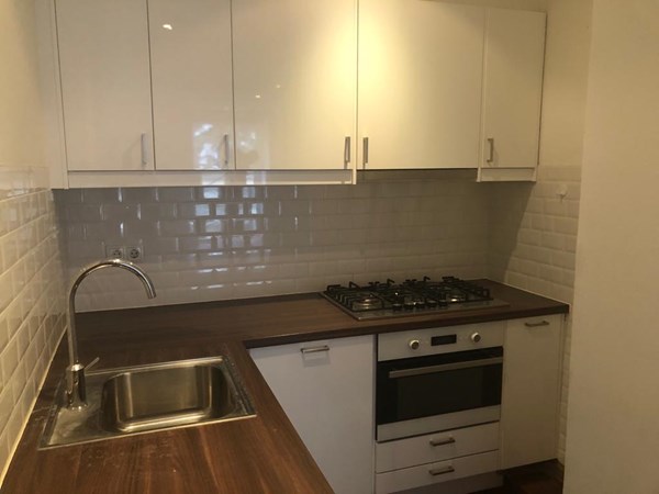 Het appartement beschikt over een prachtig ruim opgezette woonkamer met open keuken. De keuken is uitgerust met een vaatwasser, gasfornuis, oven, magnetron en koel-/vriescombinatie.